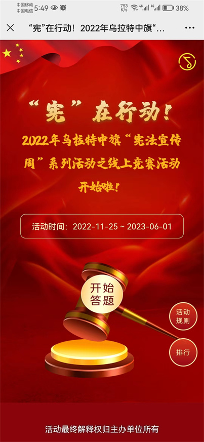 烏拉特中旗“憲法宣傳周”系列活動之線上(shàng)競賽活∏∑©§動!
