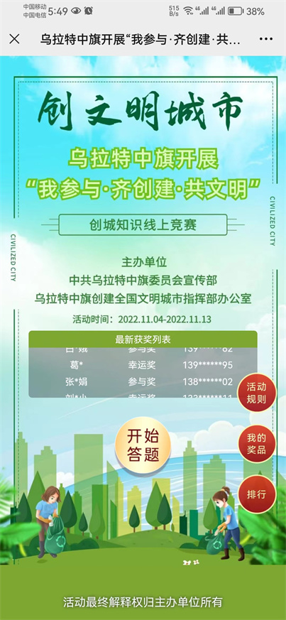 烏拉特中旗開(kāi)展“我參與·齊創建·共文(wén)明¶φ∑(míng)”創城(chéng)知(zhī)識線上(shàng)競賽